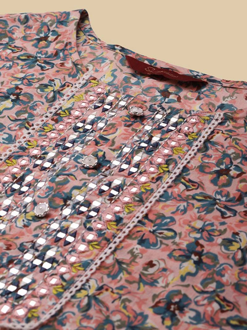 | Product Name | Peach & Blue Floral Printed Pure Cotton Straight Kurta With Trouser & Dupatta | |