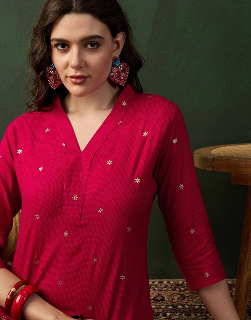 | Product Name | Pink Floral Printed V Neck Straight Kurta With Trousers | |
