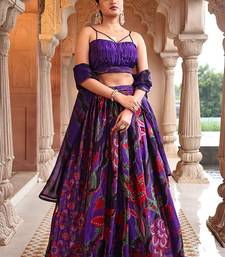 Printed beads and stones ready to wear lehenga & unstitched blouse with dupatta free size upto 42