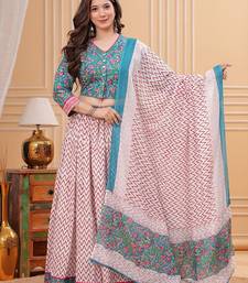 Printed block print ready to wear lehenga & blouse with dupatta free size upto 42