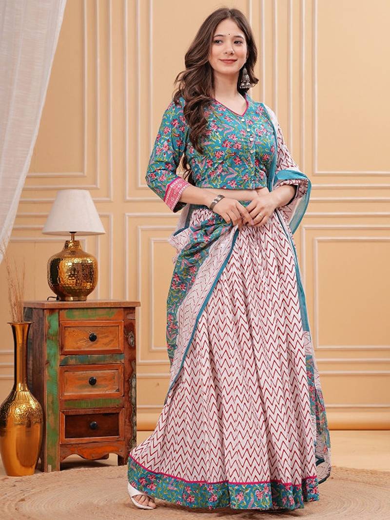 | Product Name | Printed Block Print Ready To Wear Lehenga & Blouse With Dupatta Free Size Upto 42 | |