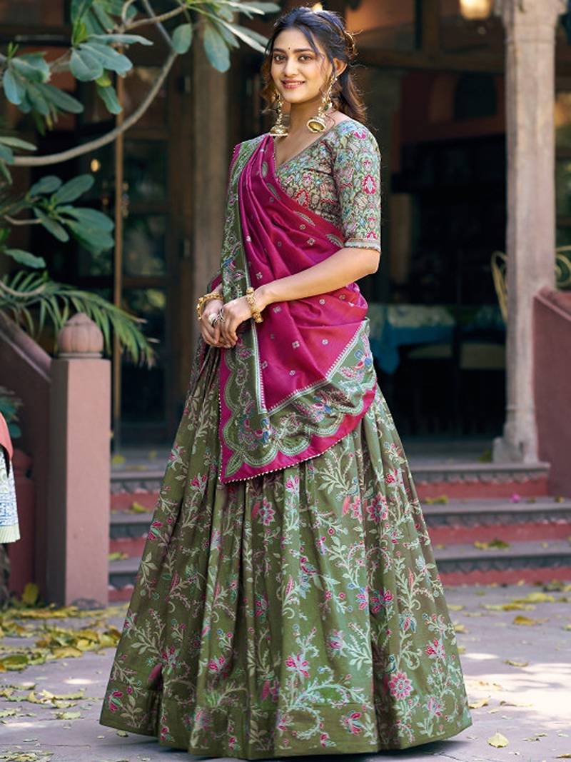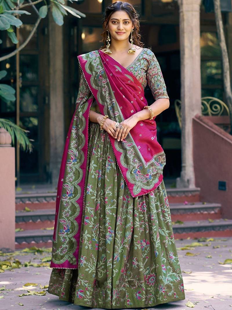 Printed foil print ready to wear lehenga & unstitched blouse with dupatta free size upto 42