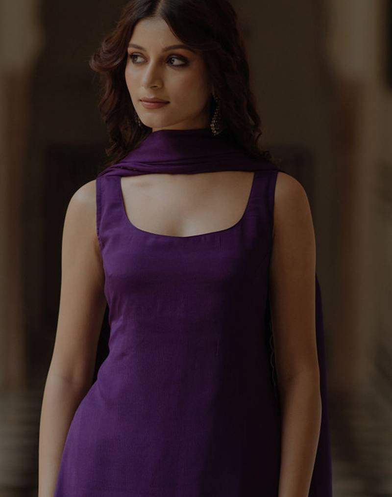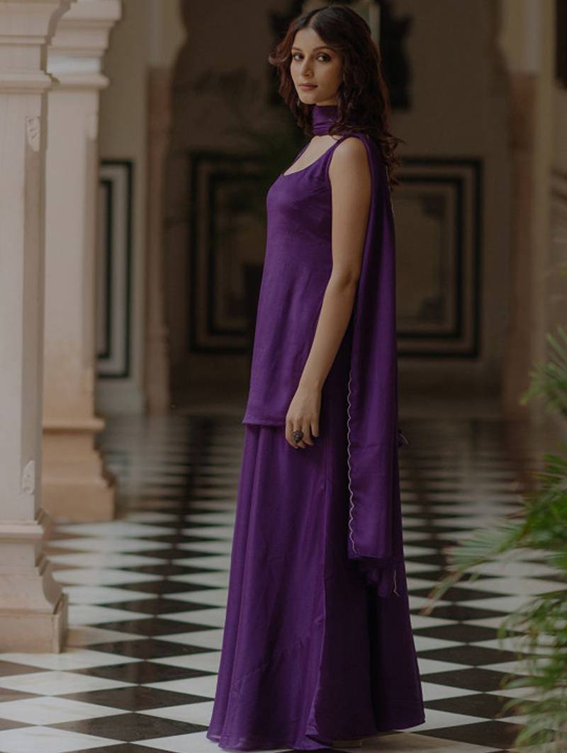 | Product Description | Purple Solid Kurta With Skirt With Dupatta Kurta Design: |