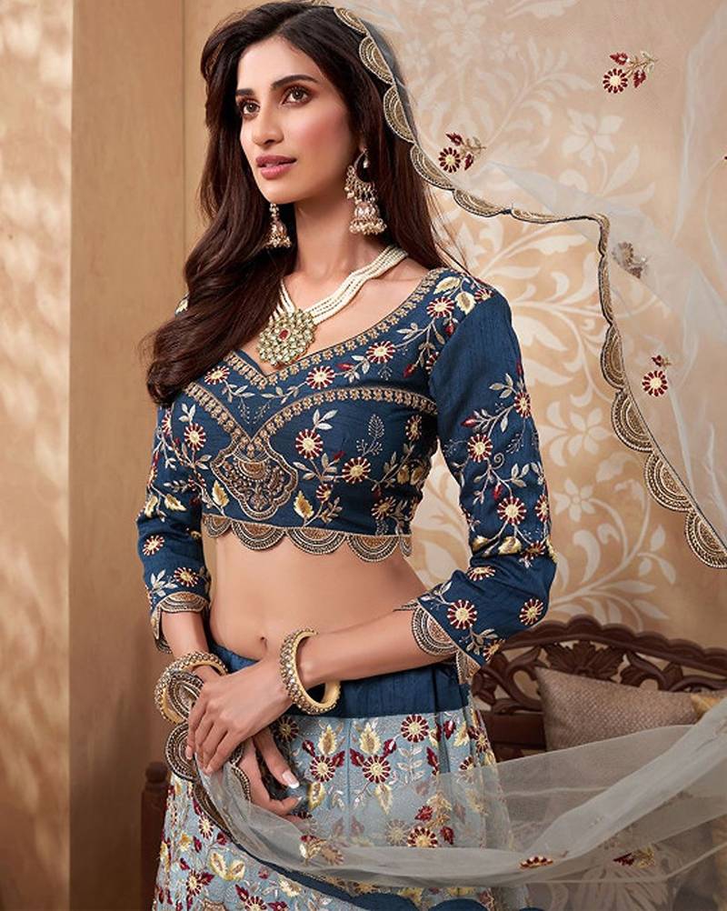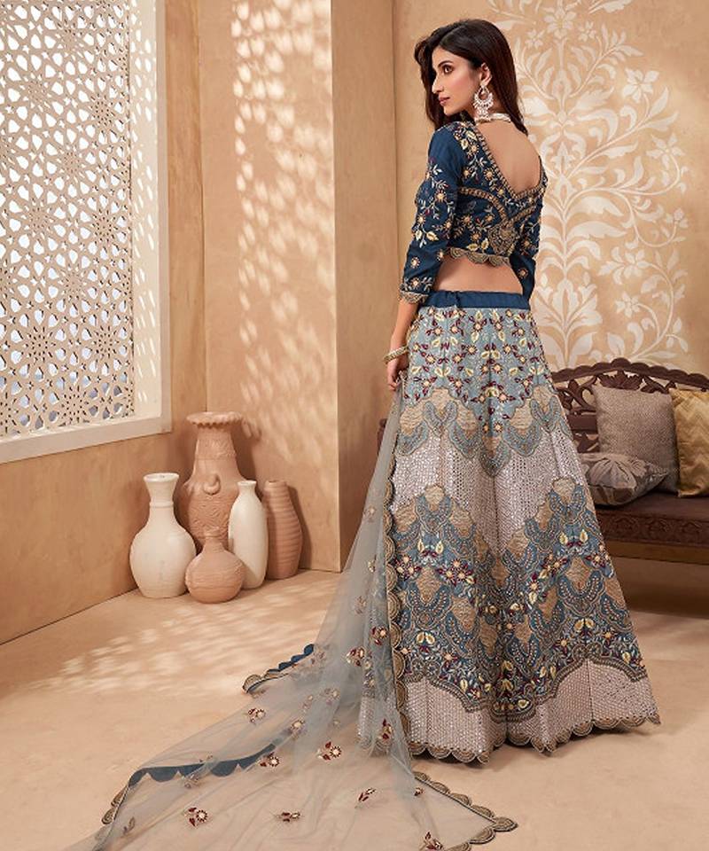 | Product Name | Shaded Blue Silk Lehnega Choli With Duptta Free Size Upto 42 | |