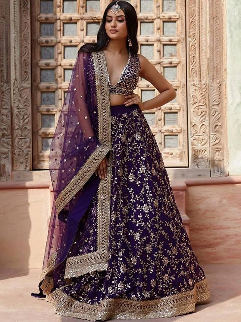 Women embellished sequinned semi stitched lehenga & blouse with dupatta free size upto 42