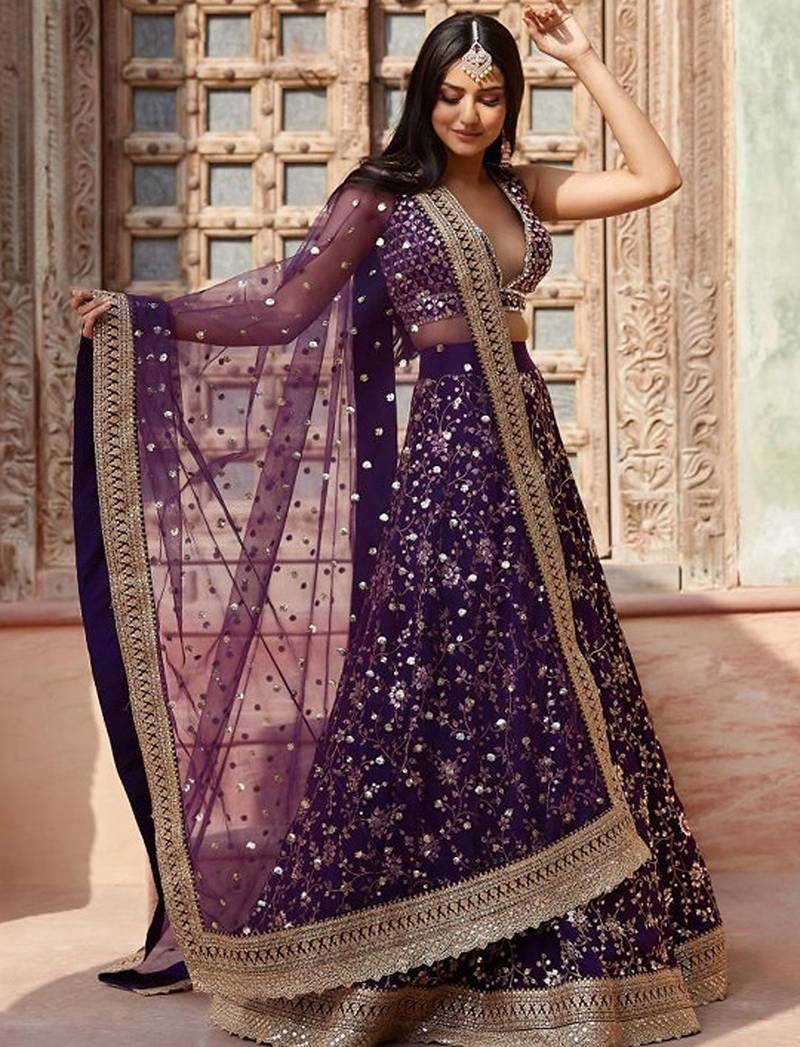 | • | Dupatta | : | Color- Purple / Fabric- Net |