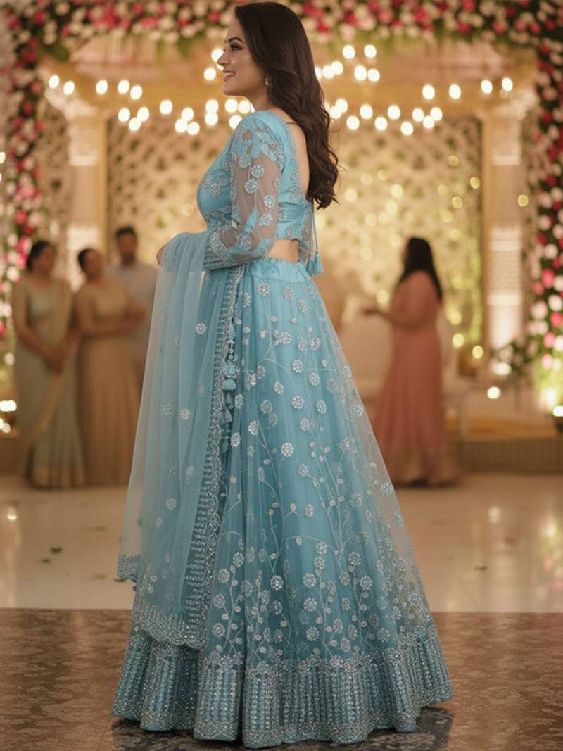 Women embroidered sequinned ready to wear lehenga & blouse with dupatta free size upto 42