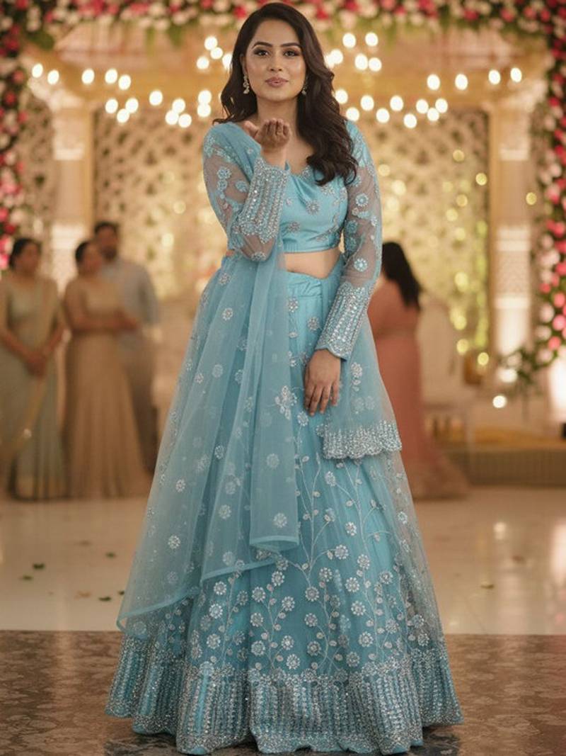 | Product Name | Women Embroidered Sequinned Ready To Wear Lehenga & Blouse With Dupatta Free Size Upto 42 | |