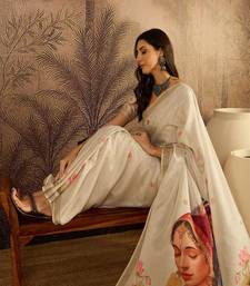 Women floral printed zari border saree with unstitched saree blouse