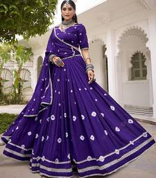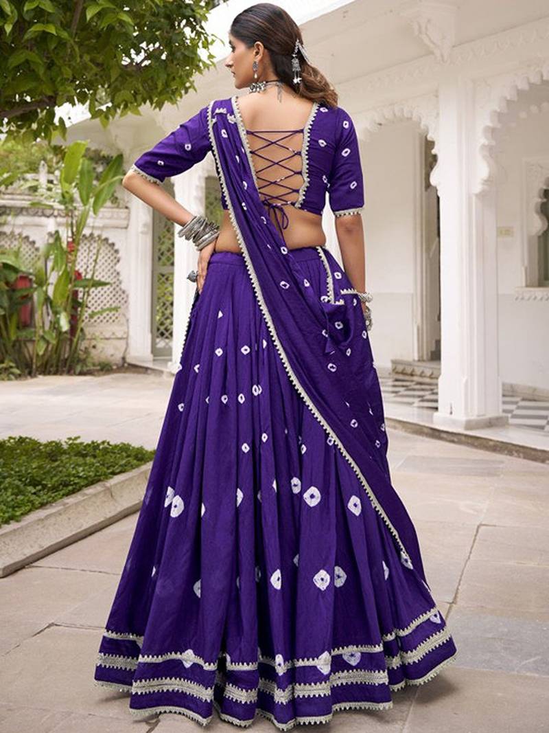 Women purple printed cotton lehenga & blouse with lace detailing dupatta free size upto 42