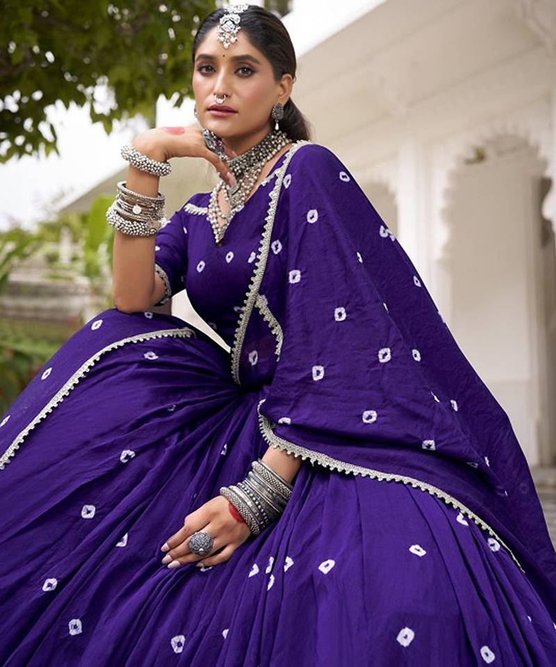 | Product Name | Women Purple Printed Cotton Lehenga & Blouse With Lace Detailing Dupatta Free Size Upto 42 | |