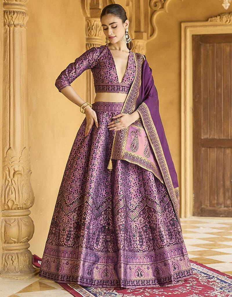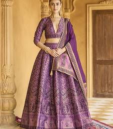 Woven design art silk lehenga & unstitched blouse with dupatta free size upto 42