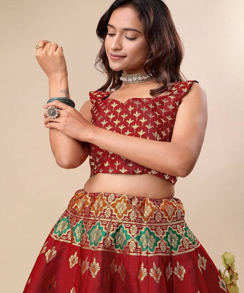 Woven design ready to wear lehenga & unstitched blouse with dupatta