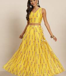 Yellow & pink printed ready to wear lehenga & choli free size upto 42