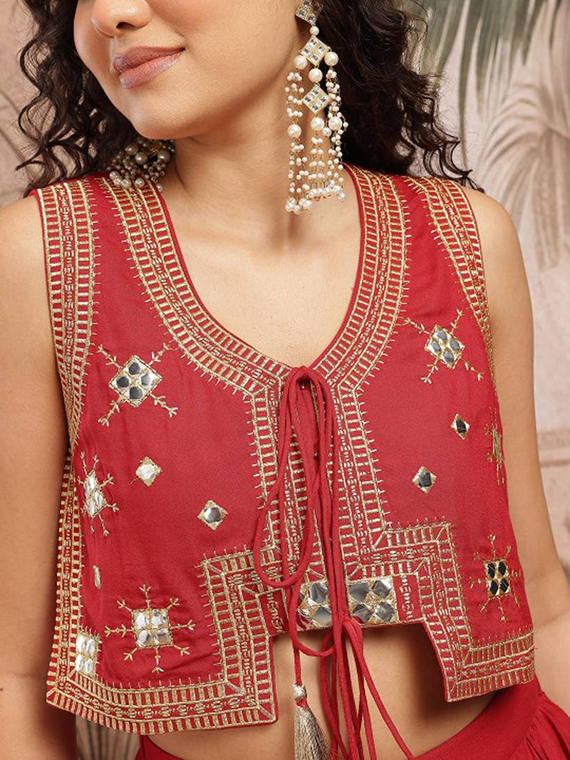 | Product Name | Zari Embroidered Tie Up Neck Ready To Wear Lehenga Choli Free Size Upto 42 | |