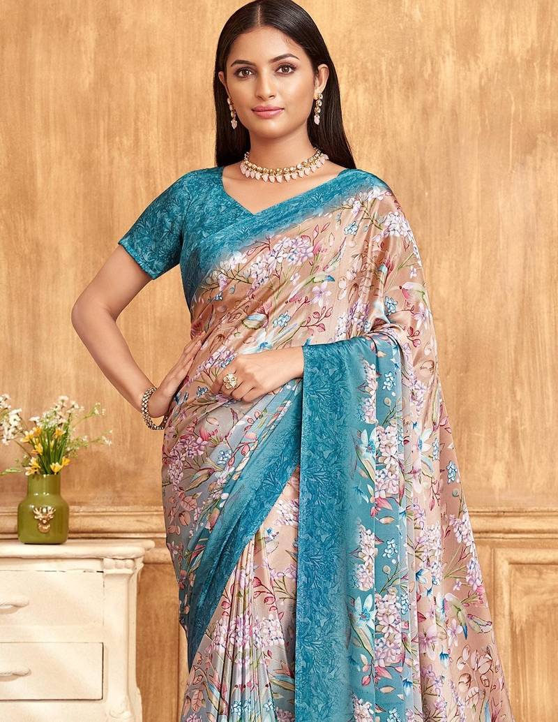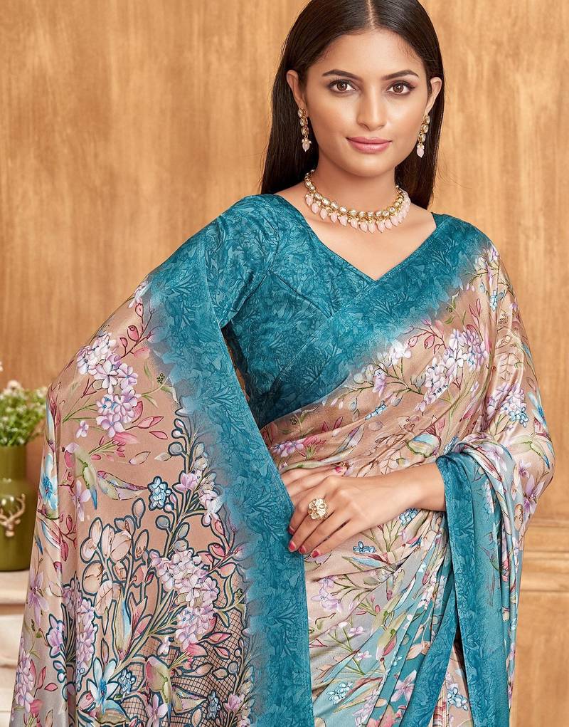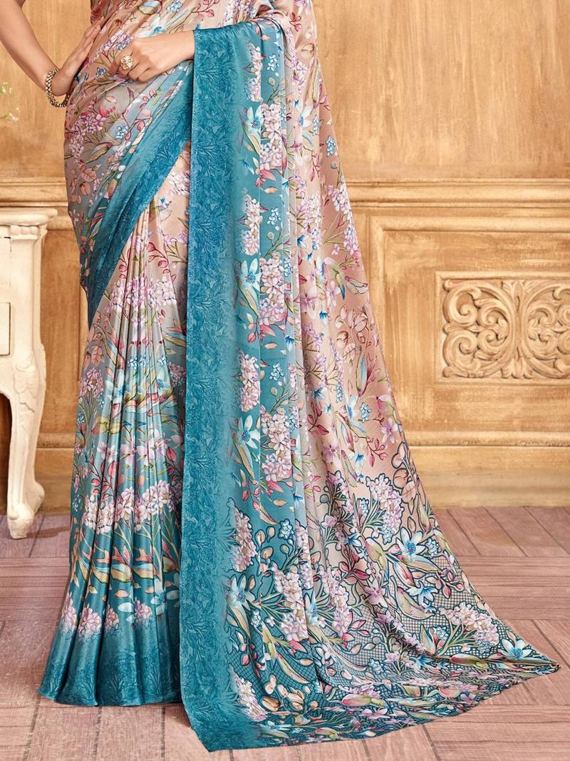 | Product Name | Blue Peach Floral Printed Crepe Silk Saree With Unstitch Blouse | |