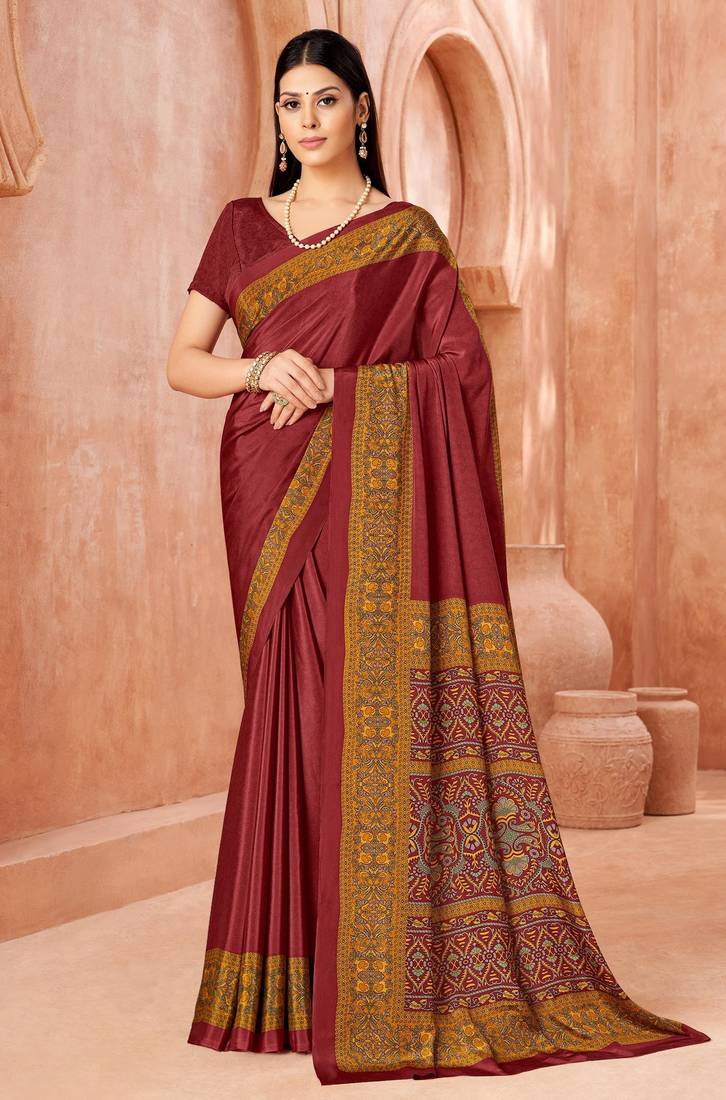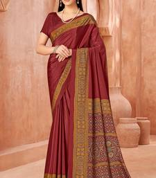 Maroon traditional floral print silk crepe modern style saree with blouse