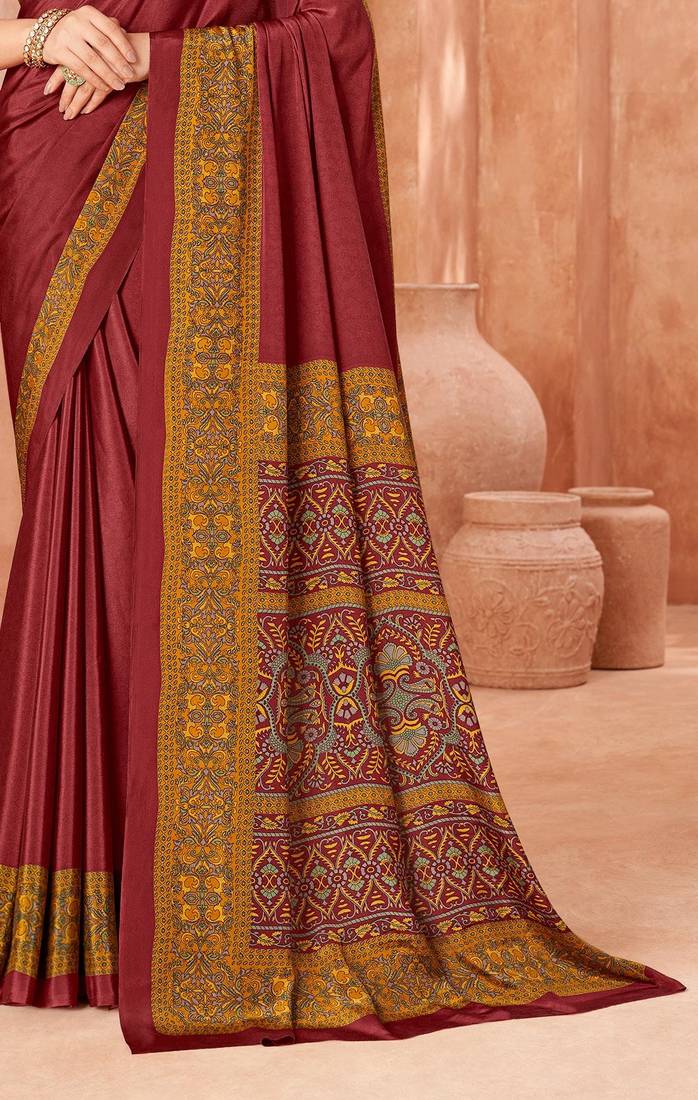 | Product Name | Maroon Traditional Floral Print Silk Crepe Modern Style Saree With Blouse | |