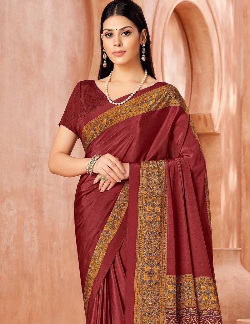 | • | Saree | : | Color- Maroon / Fabric- Crepe |