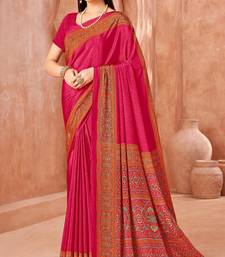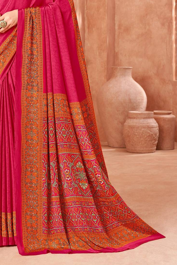 Rani pink traditional floral print silk crepe modern style saree with blouse