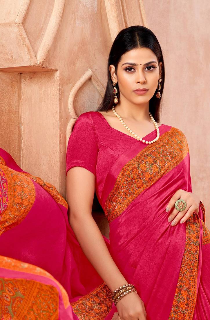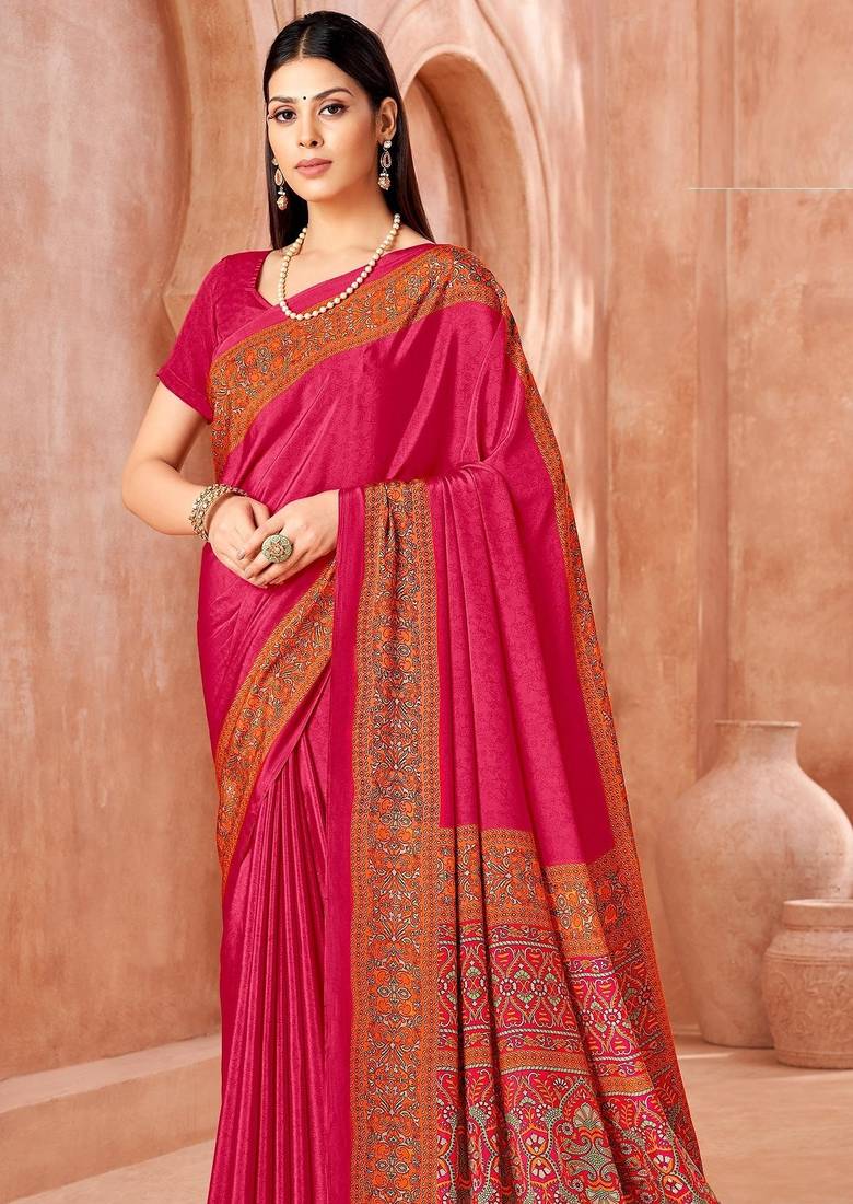 | Product Name | Rani Pink Traditional Floral Print Silk Crepe Modern Style Saree With Blouse | |