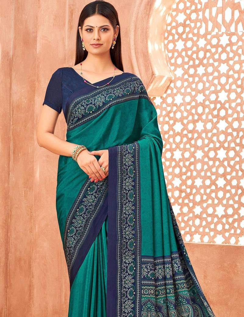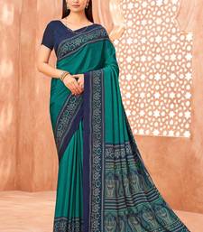 Sea green traditional floral print silk crepe modern style saree with blouse