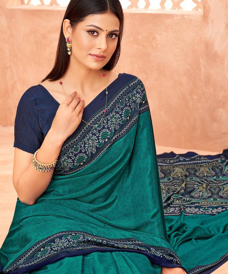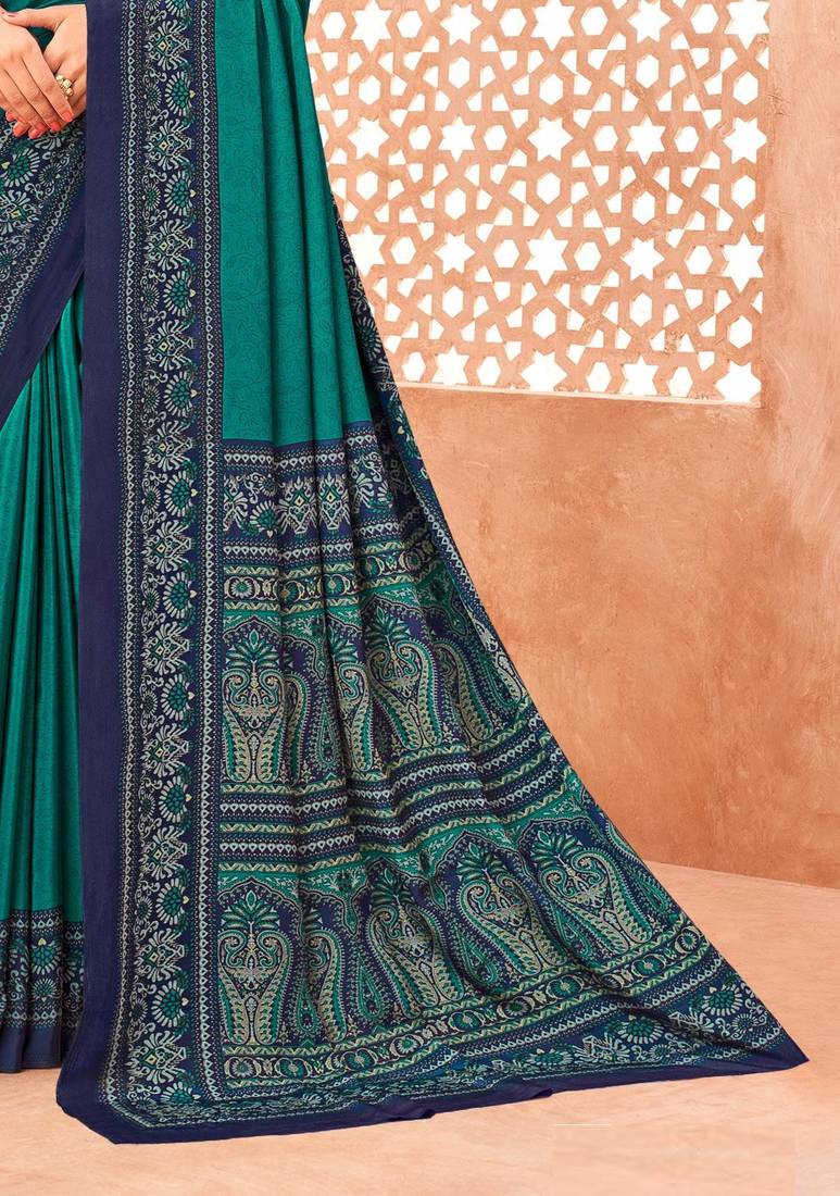 | Product Name | Sea Green Traditional Floral Print Silk Crepe Modern Style Saree With Blouse | |