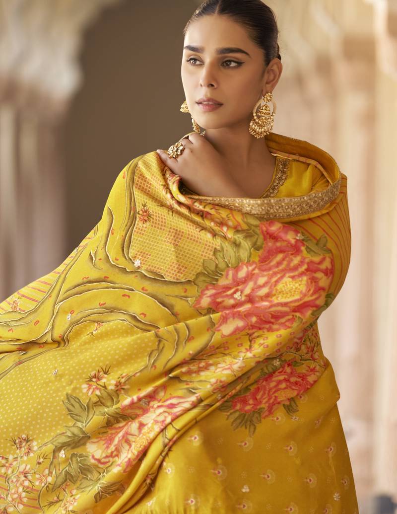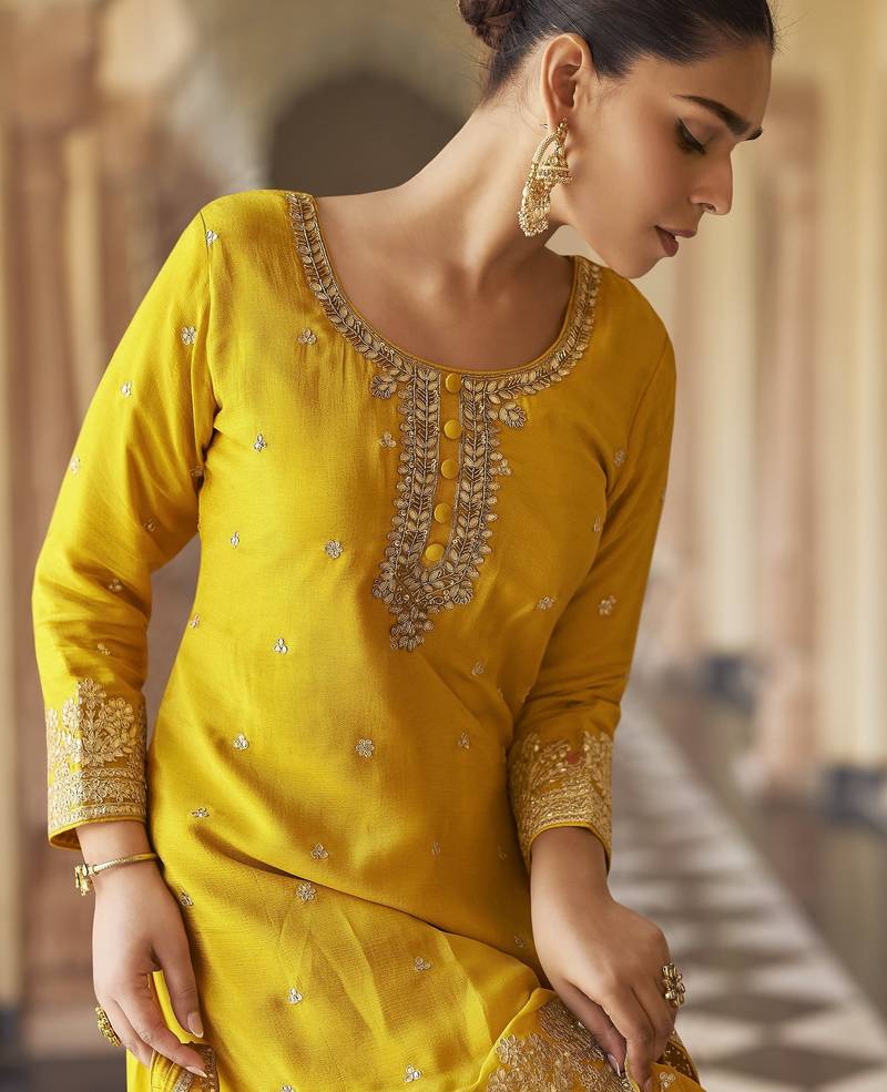 | Product Name | Yellow Embroidered Silk Semi Stitch Sharara Suit With Dupatta | |