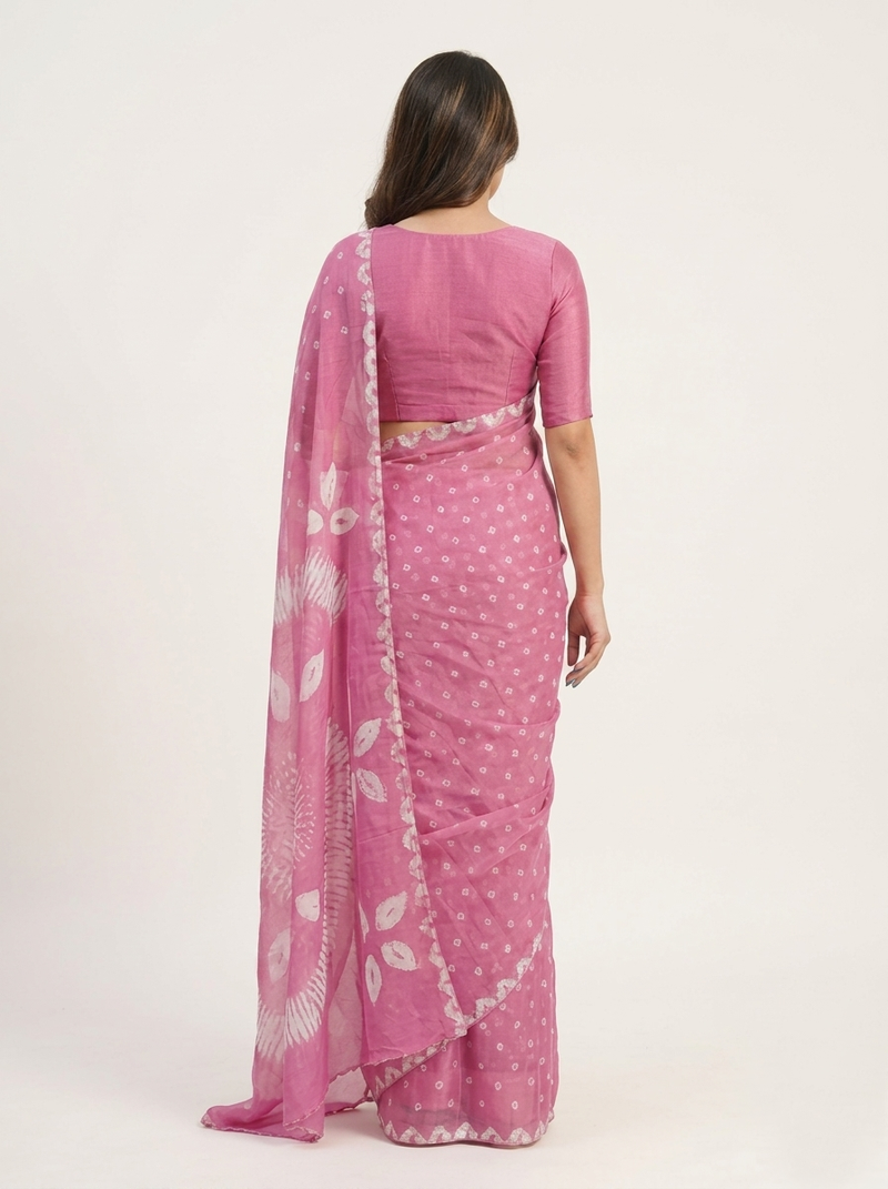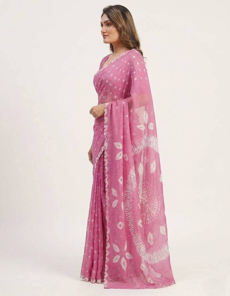 | Product Description | Elegant Chinon Bandhej Saree Crafted With Shibori Pattern. Saree Comes With Unstitched Chinon Blouse Piece. Note: Please Refer Real Image Attached |