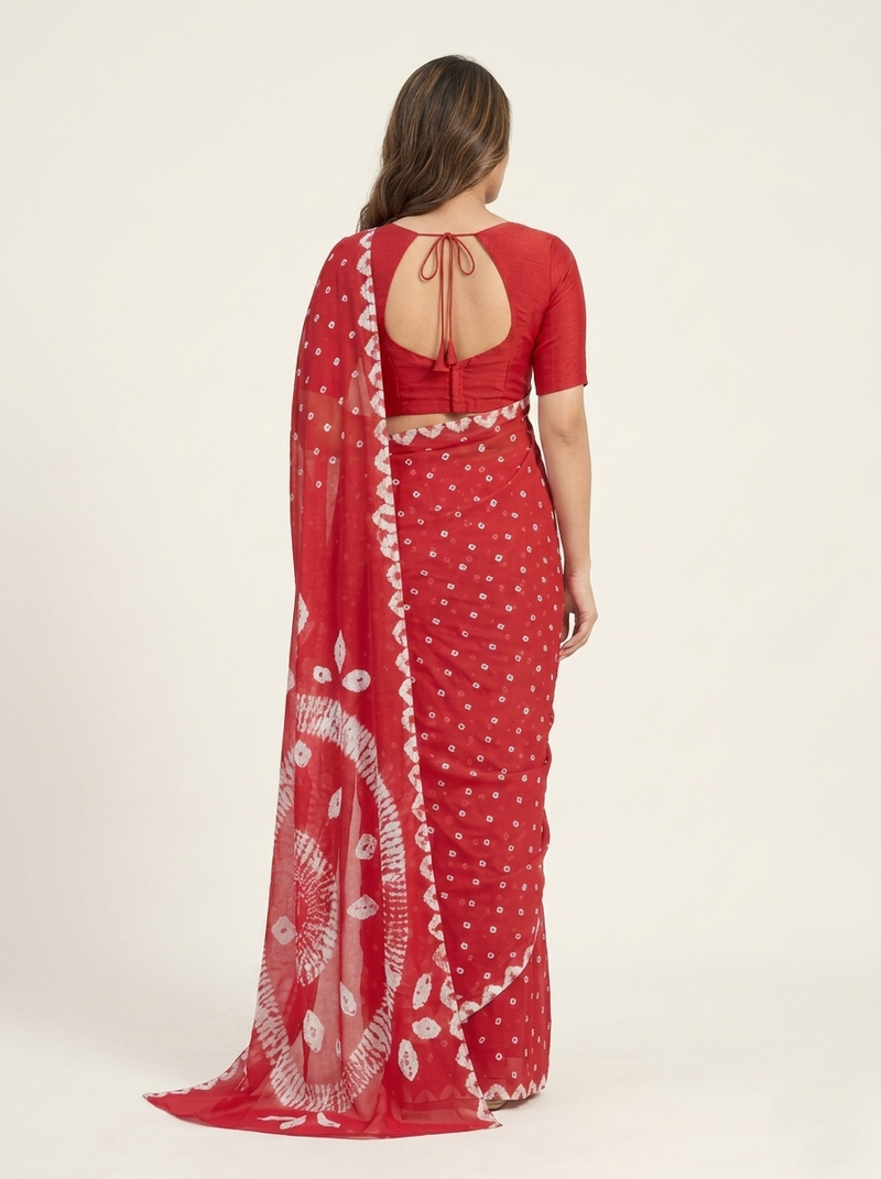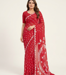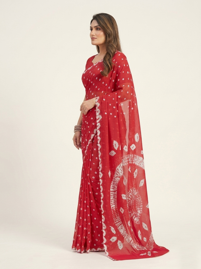 | Product Description | Elegant Chinon Bandhej Saree Crafted With Shibori Pattern. Saree Comes With Unstitched Chinon Blouse Piece. Note: Please Refer Real Image Attached |