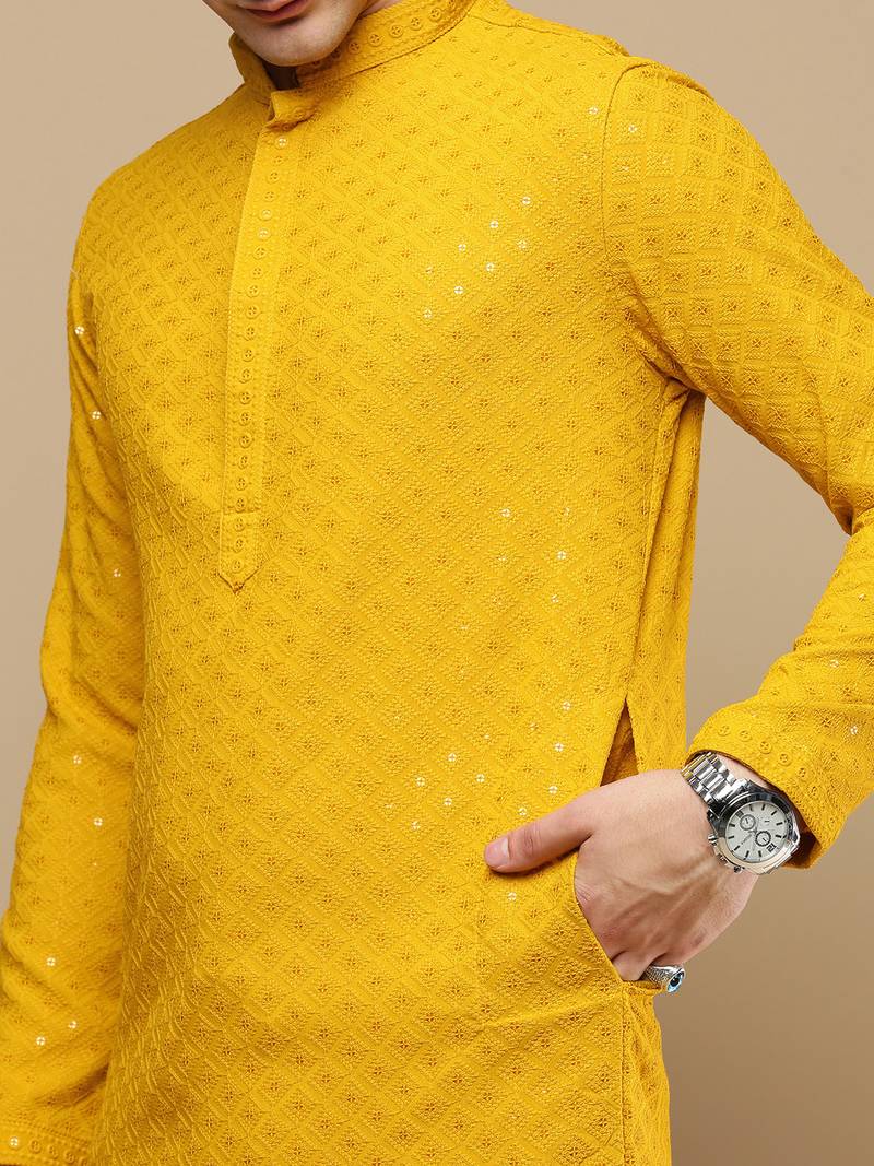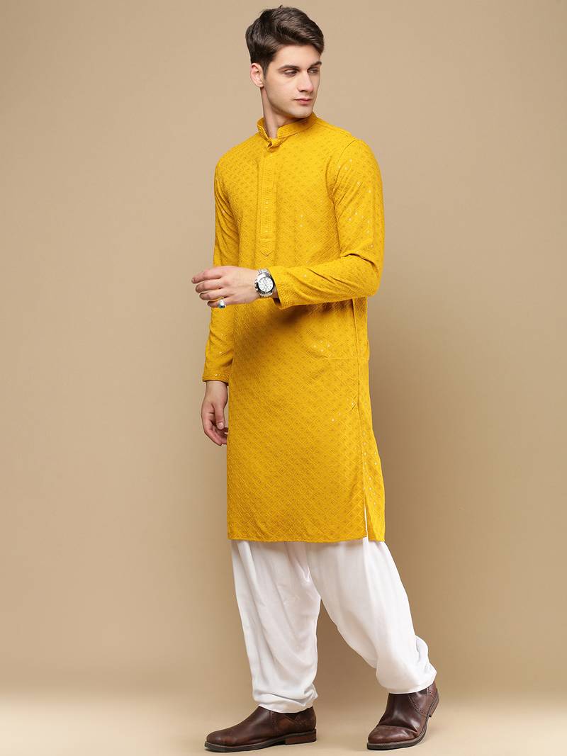 | Product Name | Unleash Your Style With Men's Mustard Cotton Sequins Kurta Set By Sanwara | |