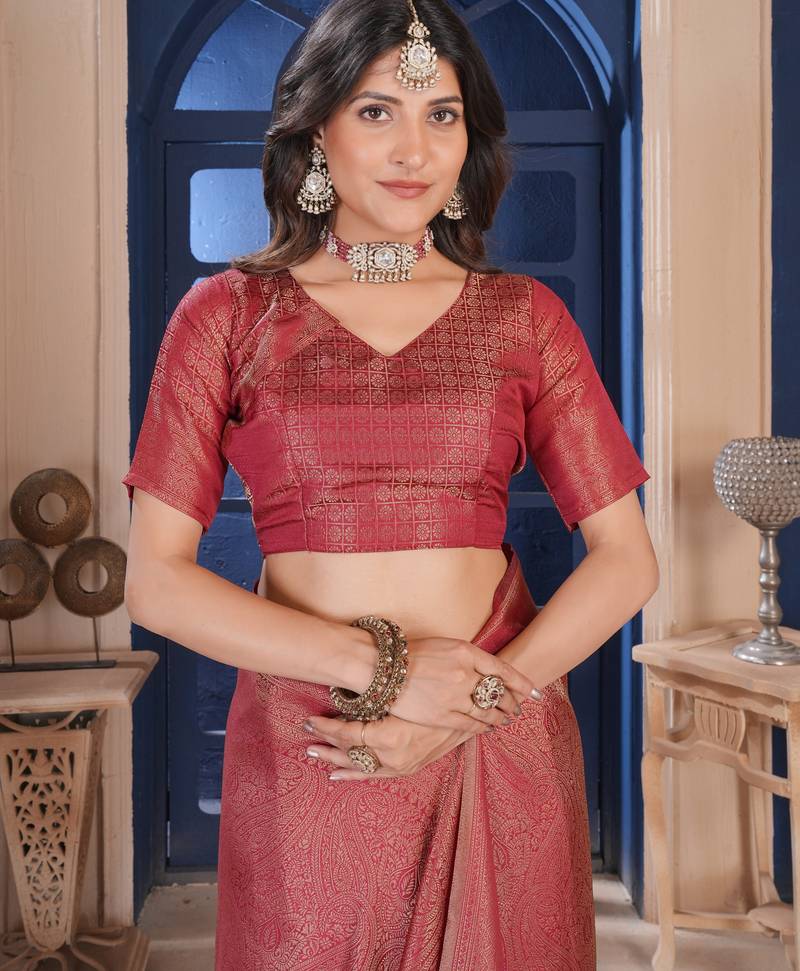 Maroon silk belnd saree for this wedding seasons ethnic saree wear