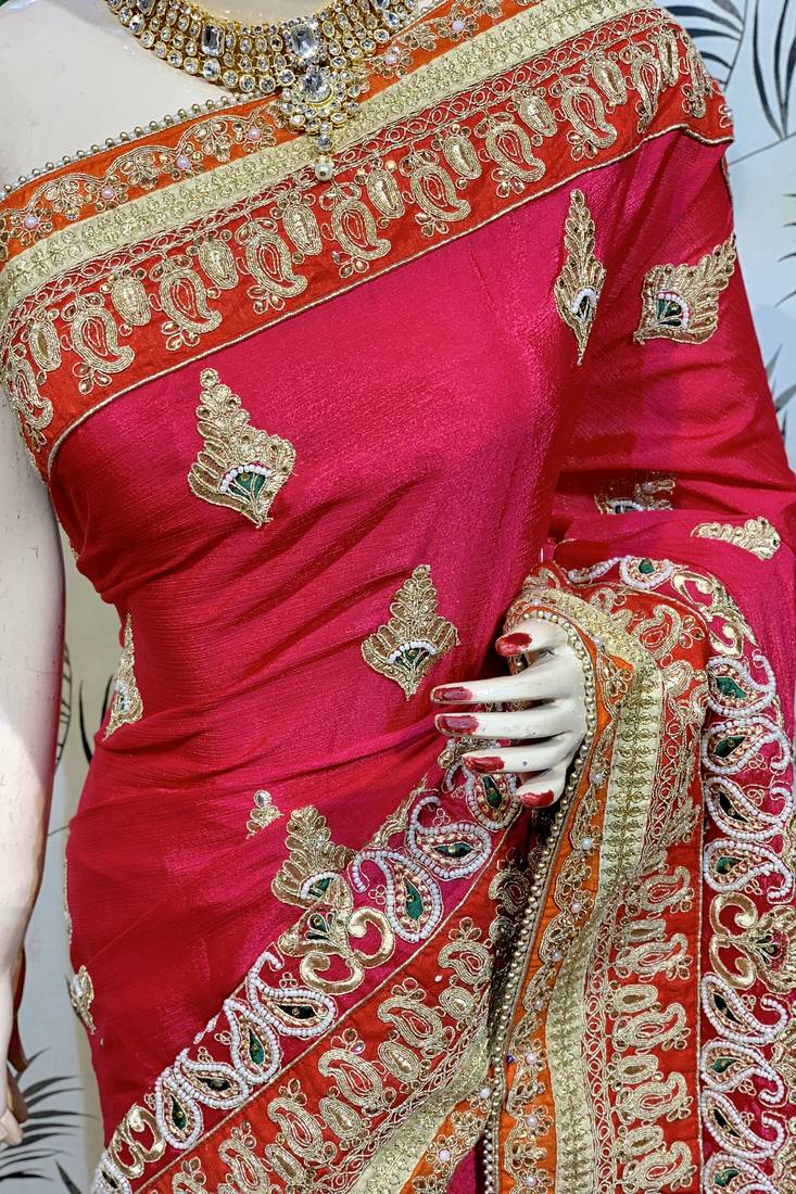 | Product Name | Chinon Chiffon Wedding Wear Saree In Pink With Embroidery Work & Crystal Stone Work | |