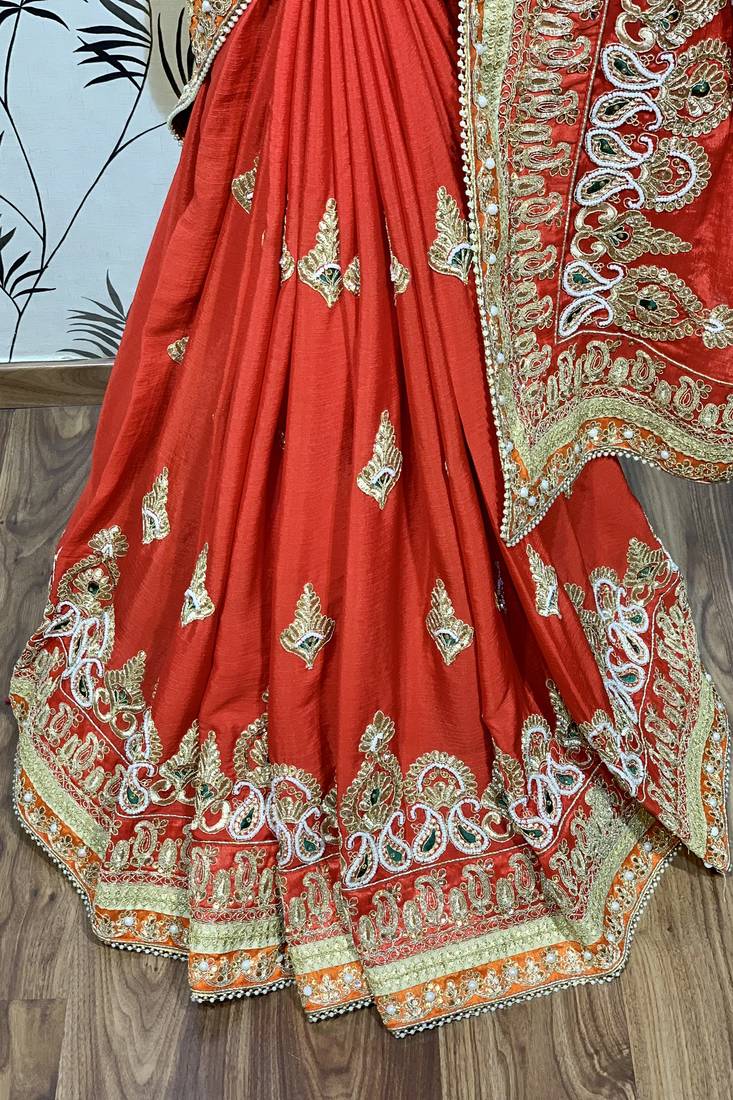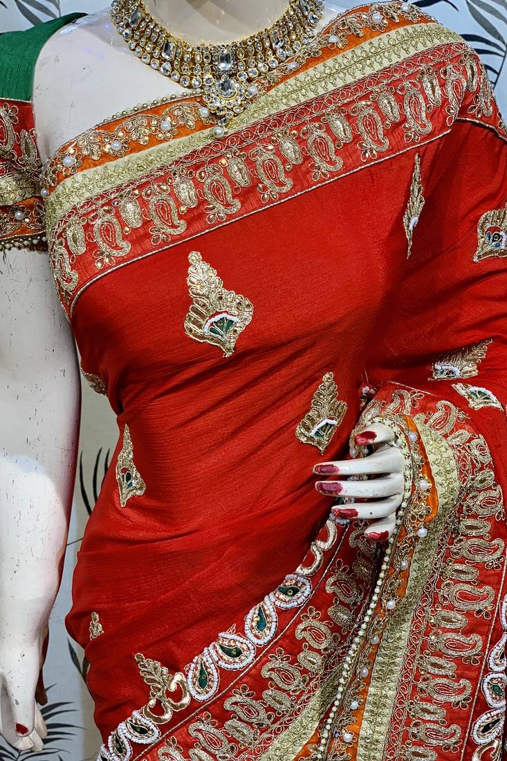 | Product Name | Chinon Chiffon Wedding Wear Saree In Red With Embroidery Work & Crystal Stone Work | |