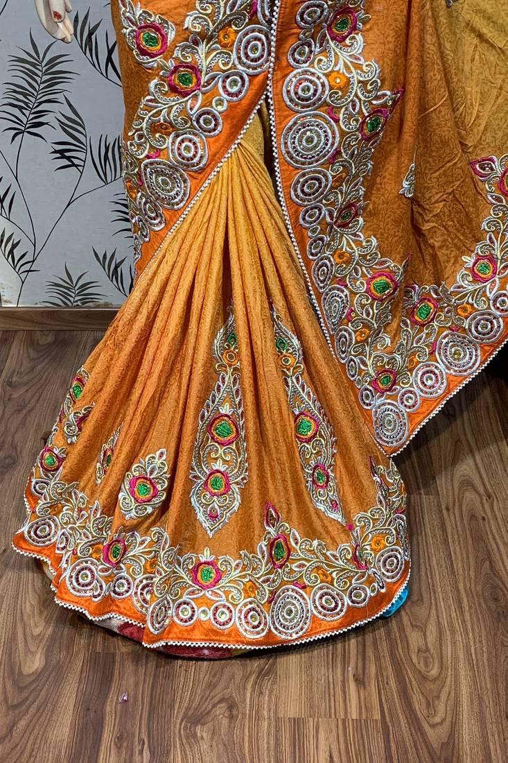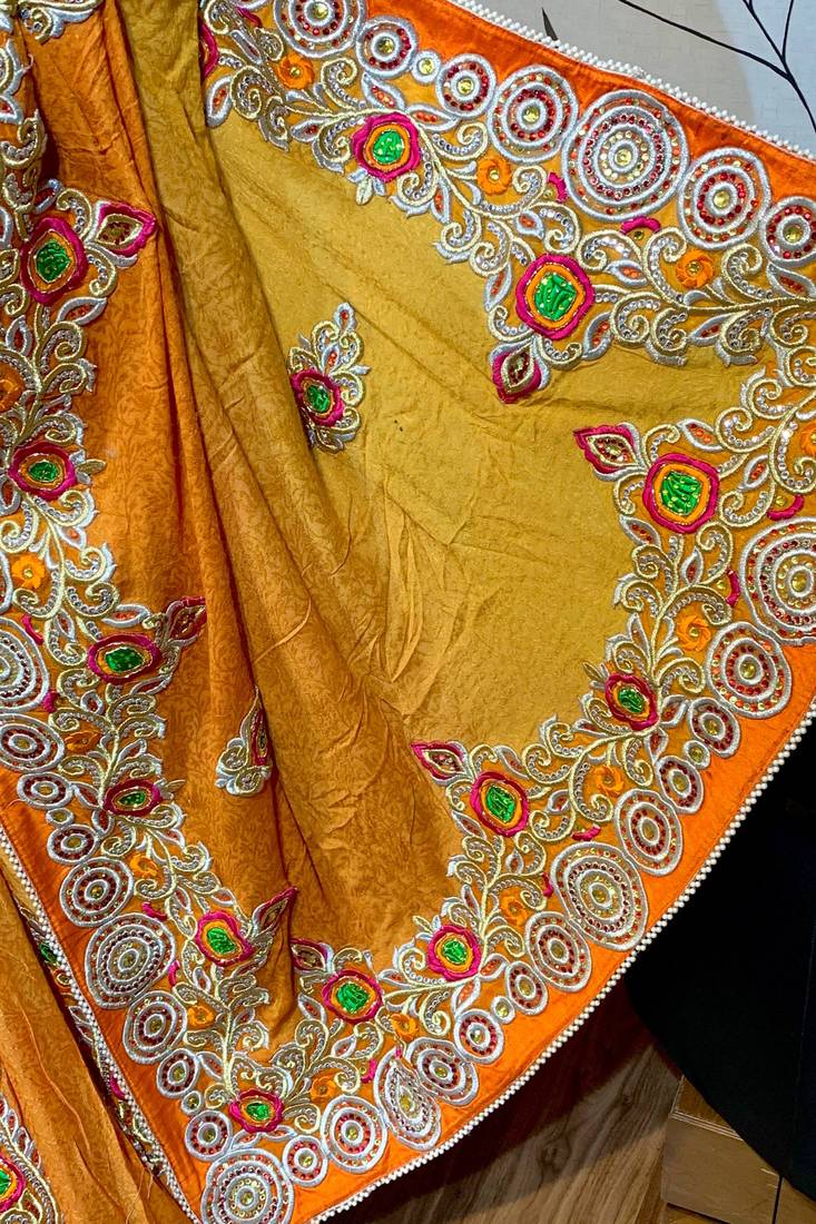 | Product Name | Fancy Fabric Party Wear Saree In Mustard With Embroidery Work & Crystal Stone Work | |