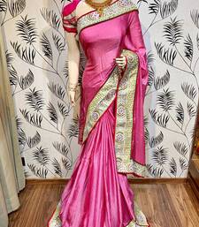 Fancy fabric party wear saree in pink with embroidery work & crystal stone work