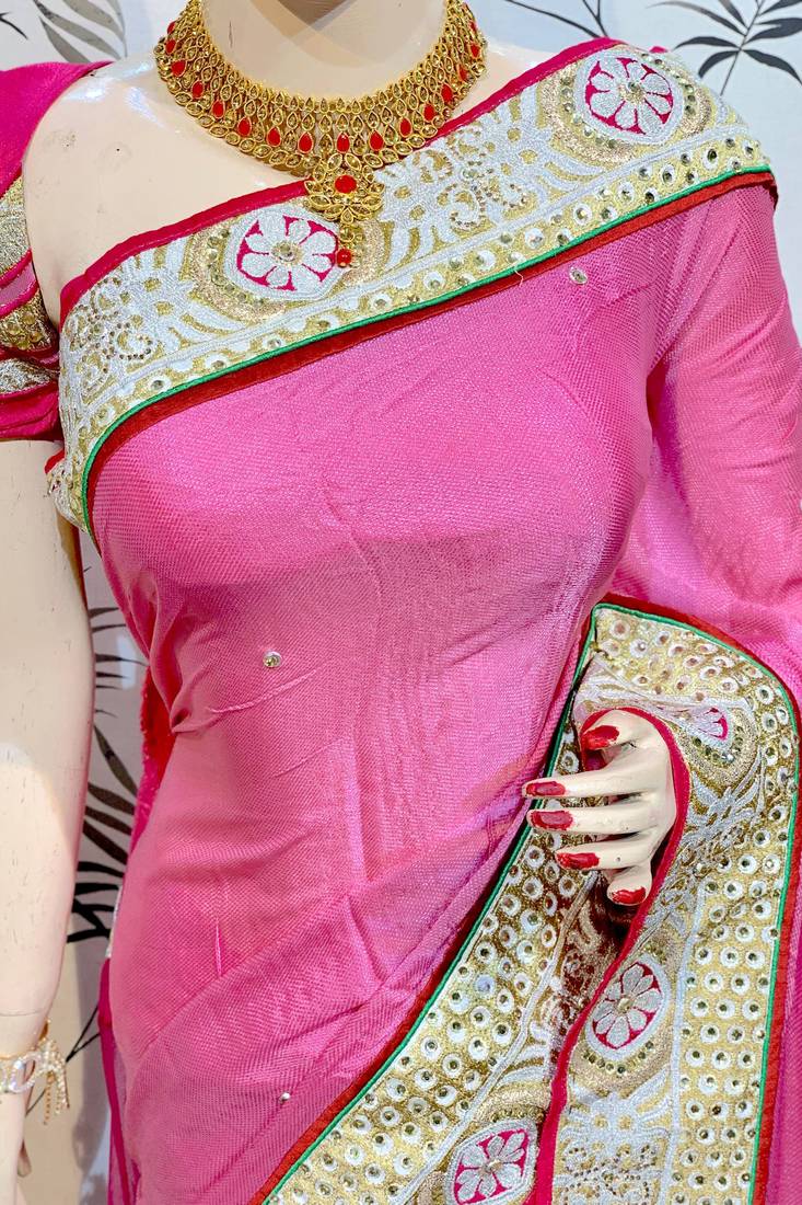 | Product Name | Fancy Fabric Party Wear Saree In Pink With Embroidery Work & Crystal Stone Work | |