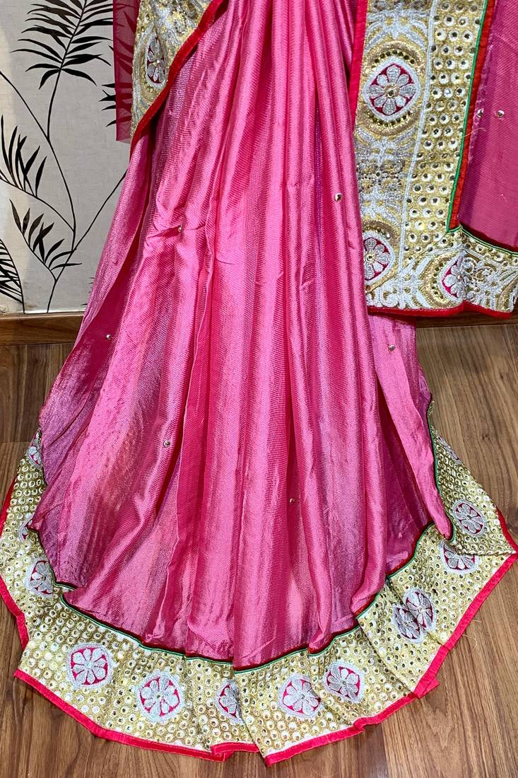 | • | Saree | : | Color- Pink / Fabric- Fancy Fabric |