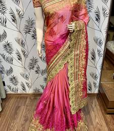 Pure chiffon wedding wear saree in pink with embroidery work & crystal stone work