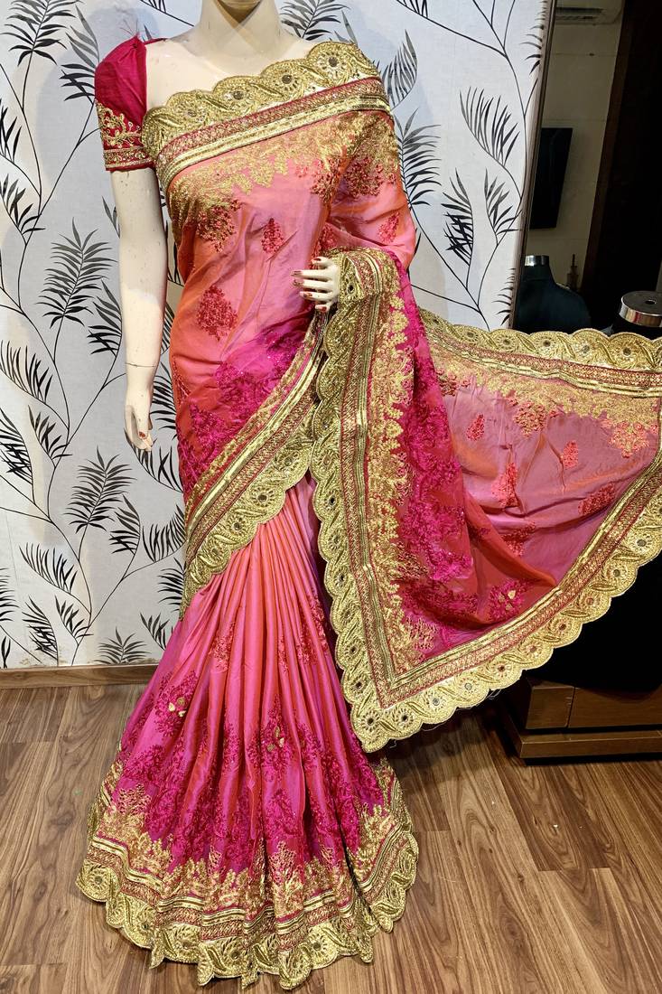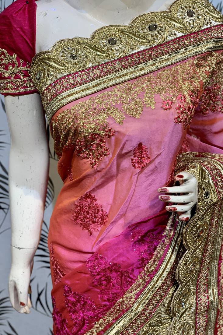 | Product Name | Pure Chiffon Wedding Wear Saree In Pink With Embroidery Work & Crystal Stone Work | |