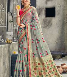 Pure silk party wear saree in grey color with embroidery work
