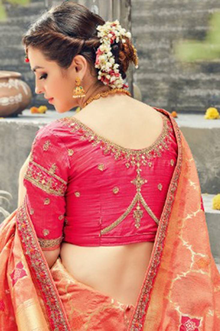 | Product Name | Pure Silk Party Wear Saree In Peach Color With Embroidery Work | |
