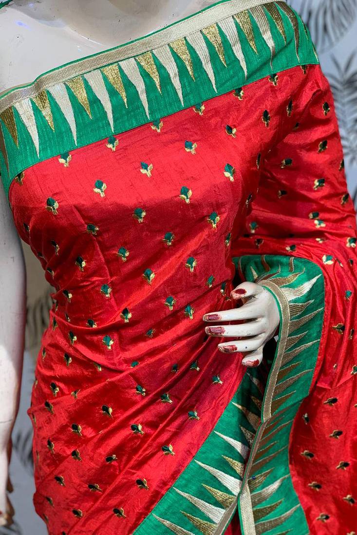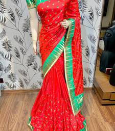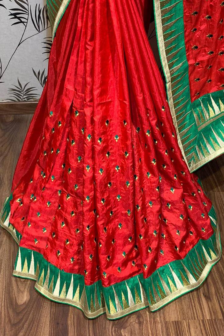 Pure silk party wear saree in red color with embroidery work