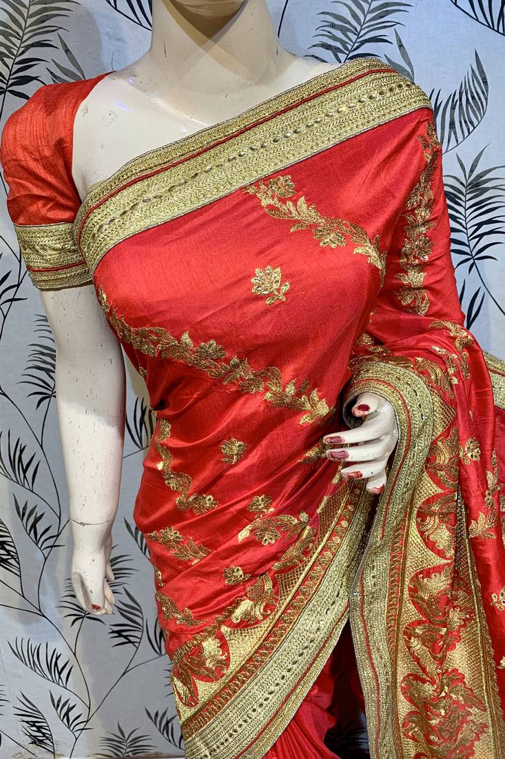 | Product Name | Pure Silk Party Wear Saree In Red With Embroidery & Crystal Stone Work | |