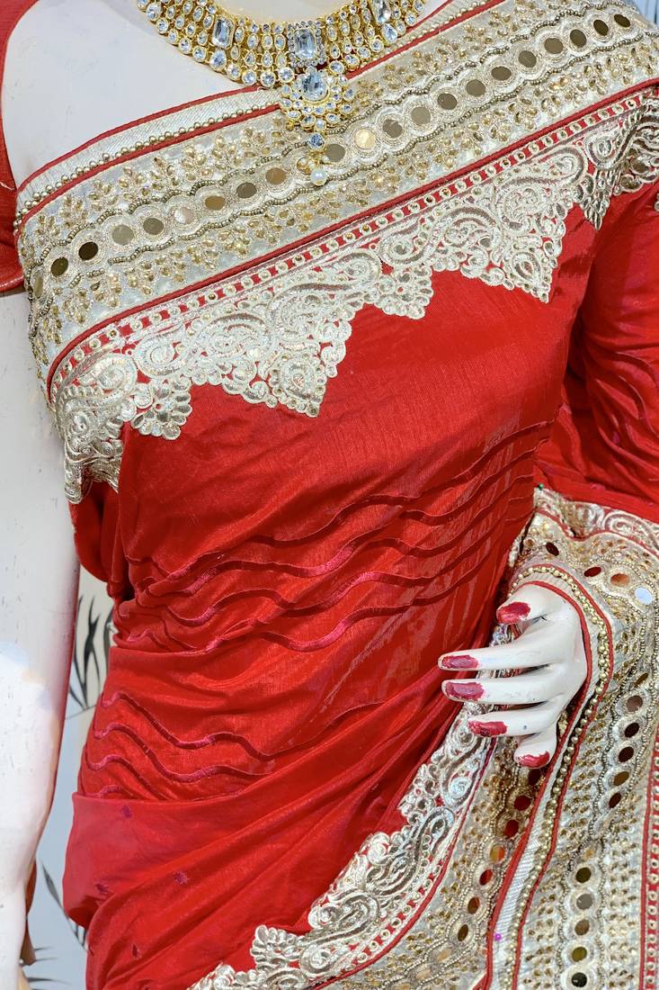 | Product Name | Pure Silk Party Wear Saree In Red With Embroidery Work & Crystal Stone Work | |