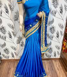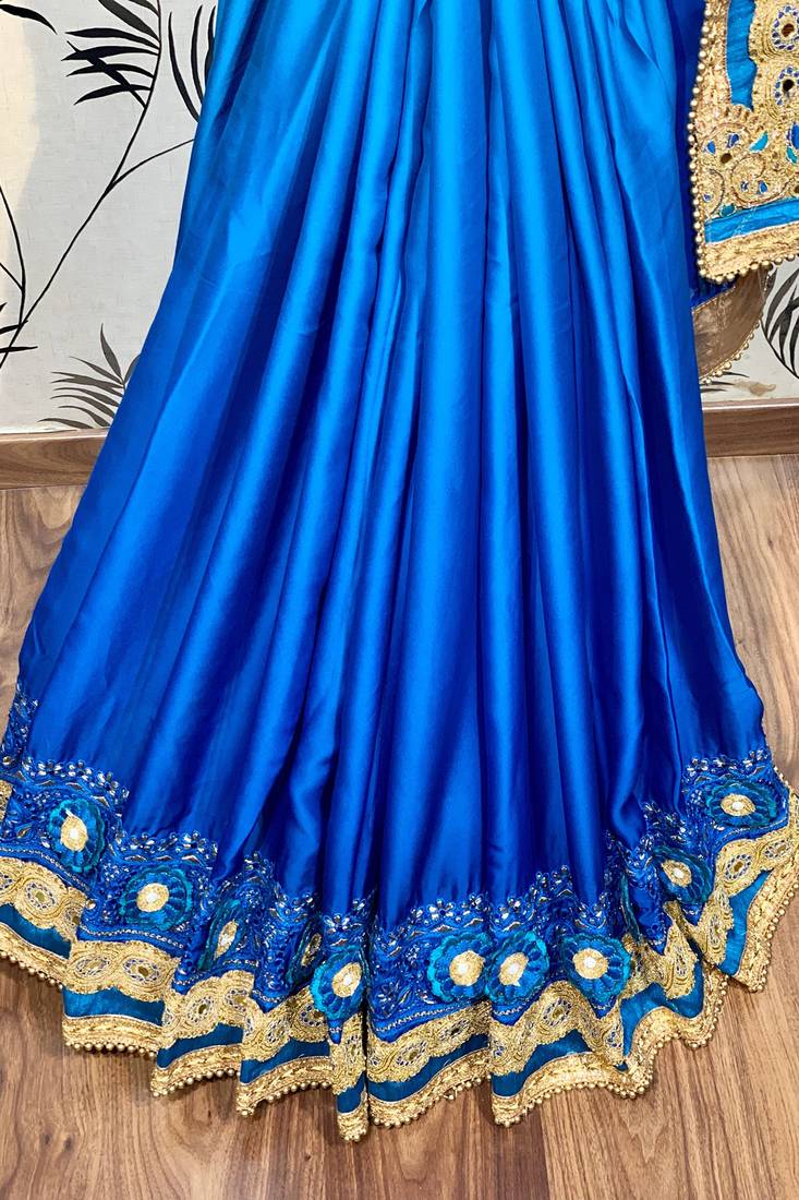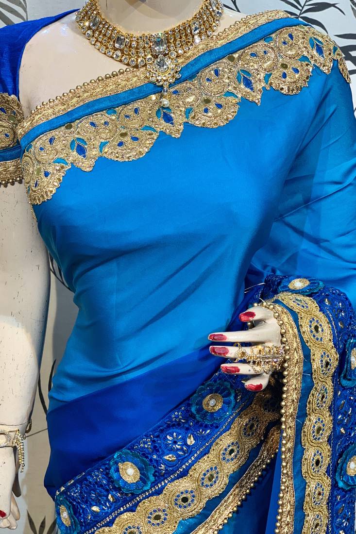 Shadow silk party wear saree in blue with embroidery work & crystal stone work