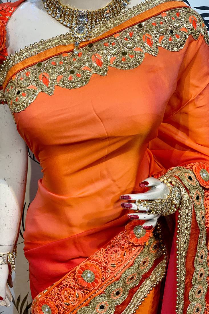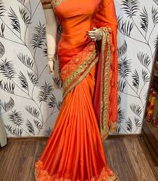 Shadow silk party wear saree in orange with embroidery work & crystal stone work