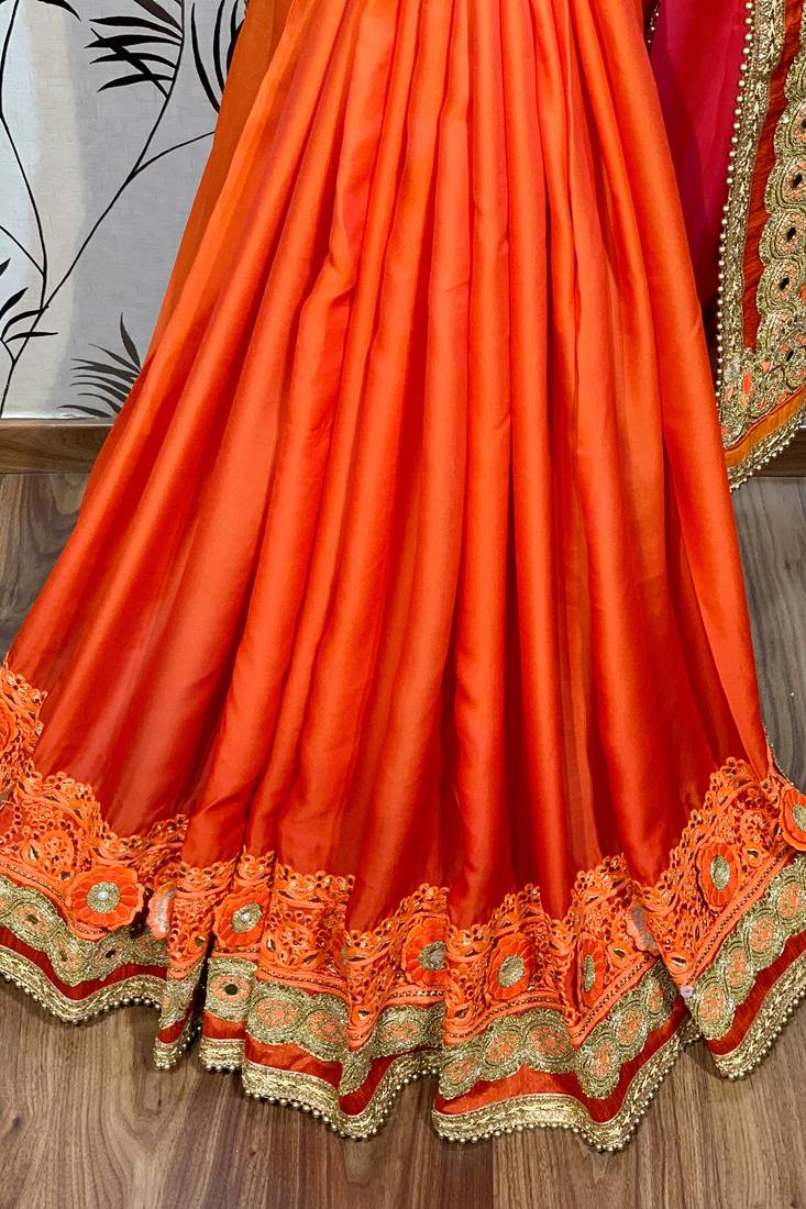 | Product Name | Shadow Silk Party Wear Saree In Orange With Embroidery Work & Crystal Stone Work | |