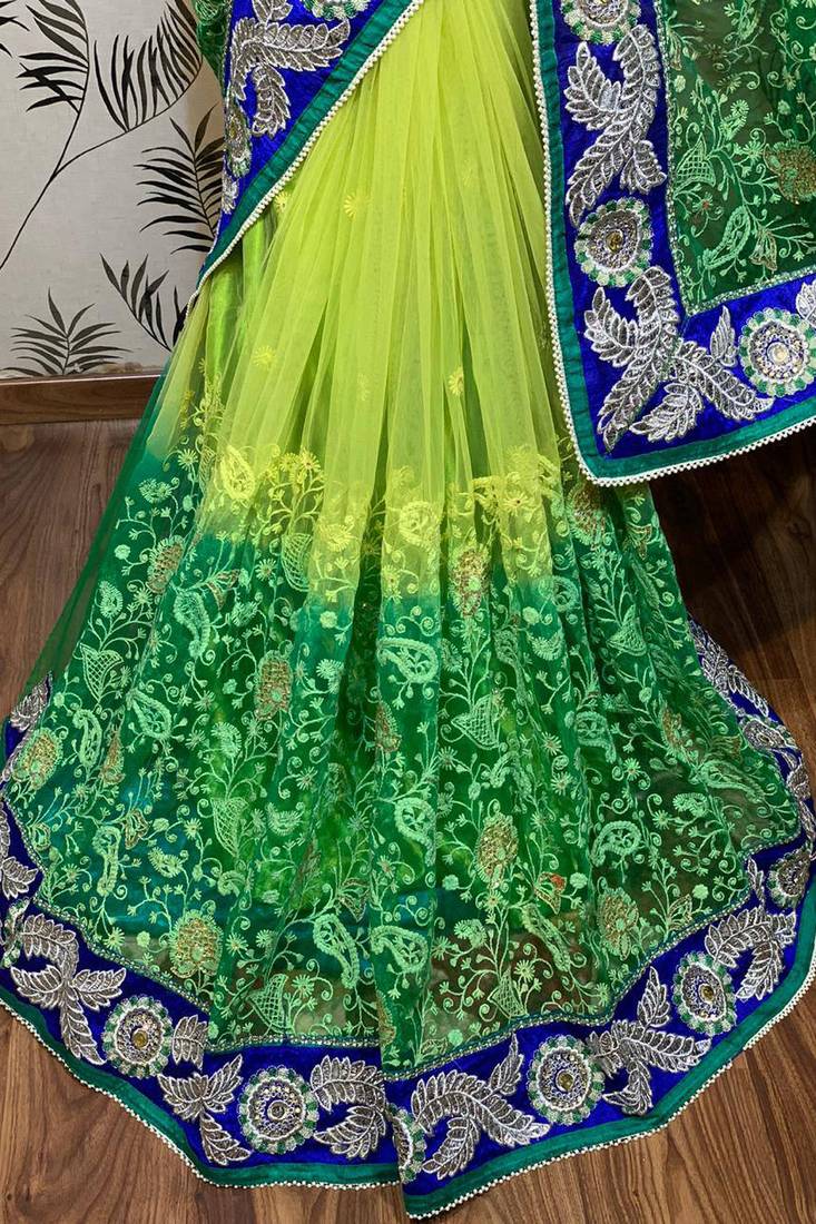 | Product Name | Soft Premium Net Party Wear Saree In Green With Embroidery Work & Crystal Stone Work | |