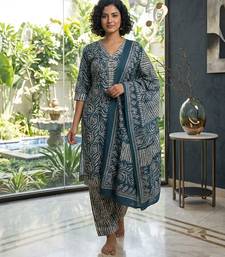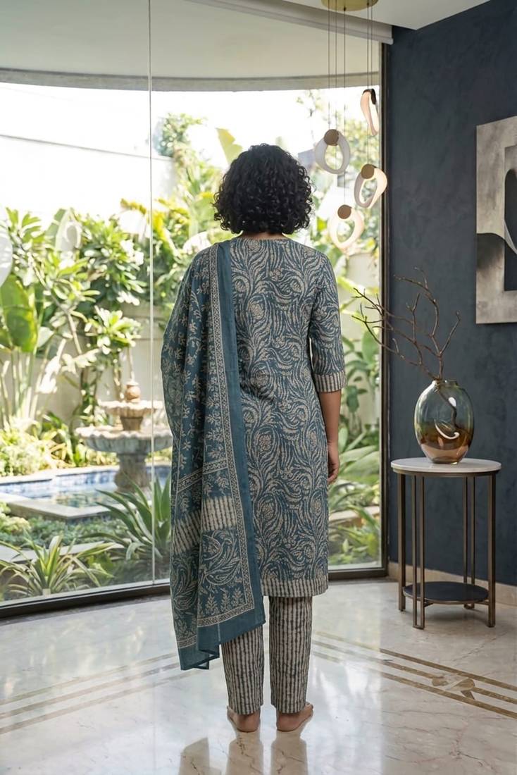 | Product Name | Blue Printed Cotton Blend Stitched Geometric Print Salwar Kurta Dupatta For Women | |